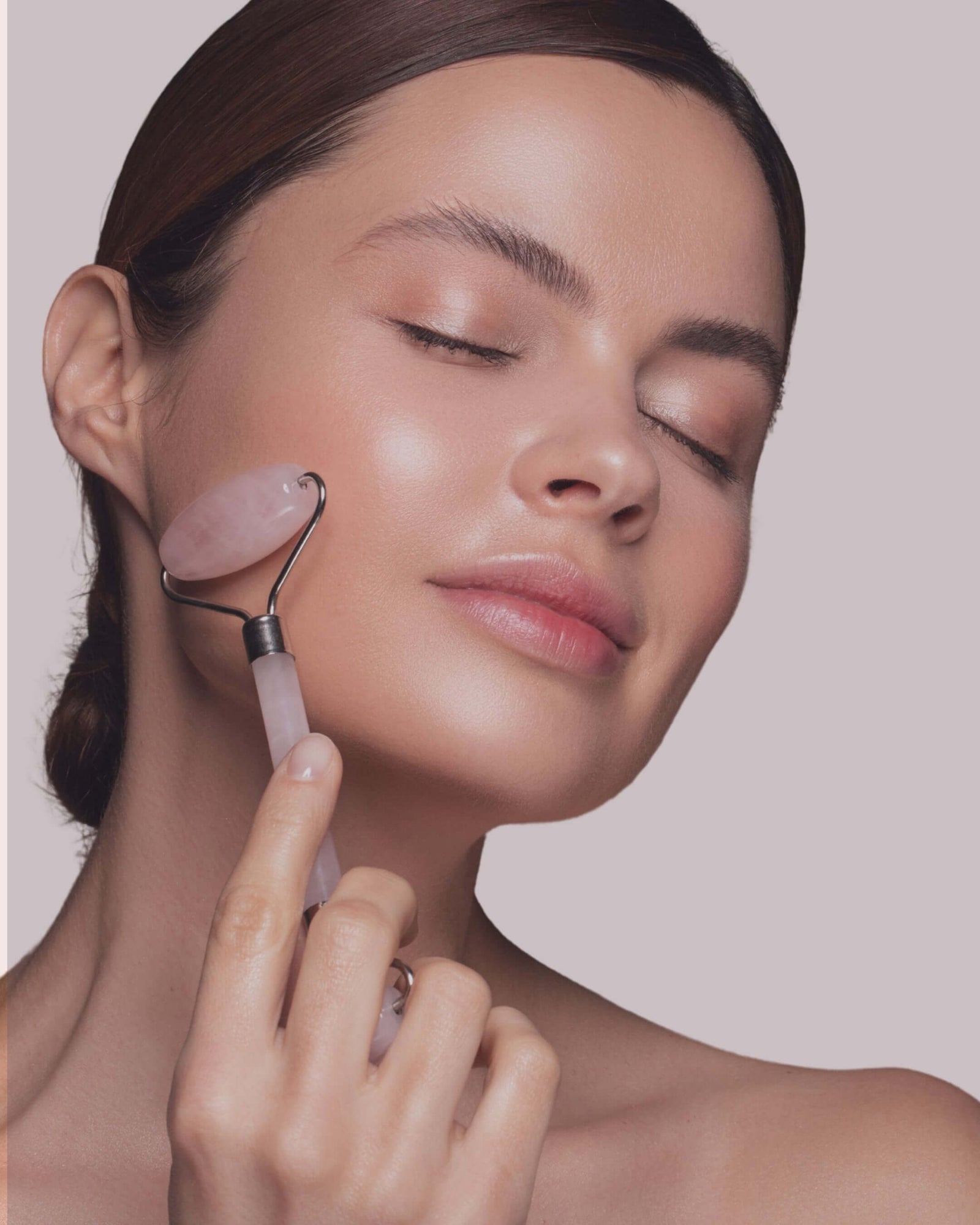 Grade A Rosenquarz Face Roller für gestraffte & strahlende Haut